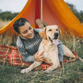 Camping typically means all huddling together in one bed, hanging out by the campfire, and throwing a ball around - we love this for you and your dog!