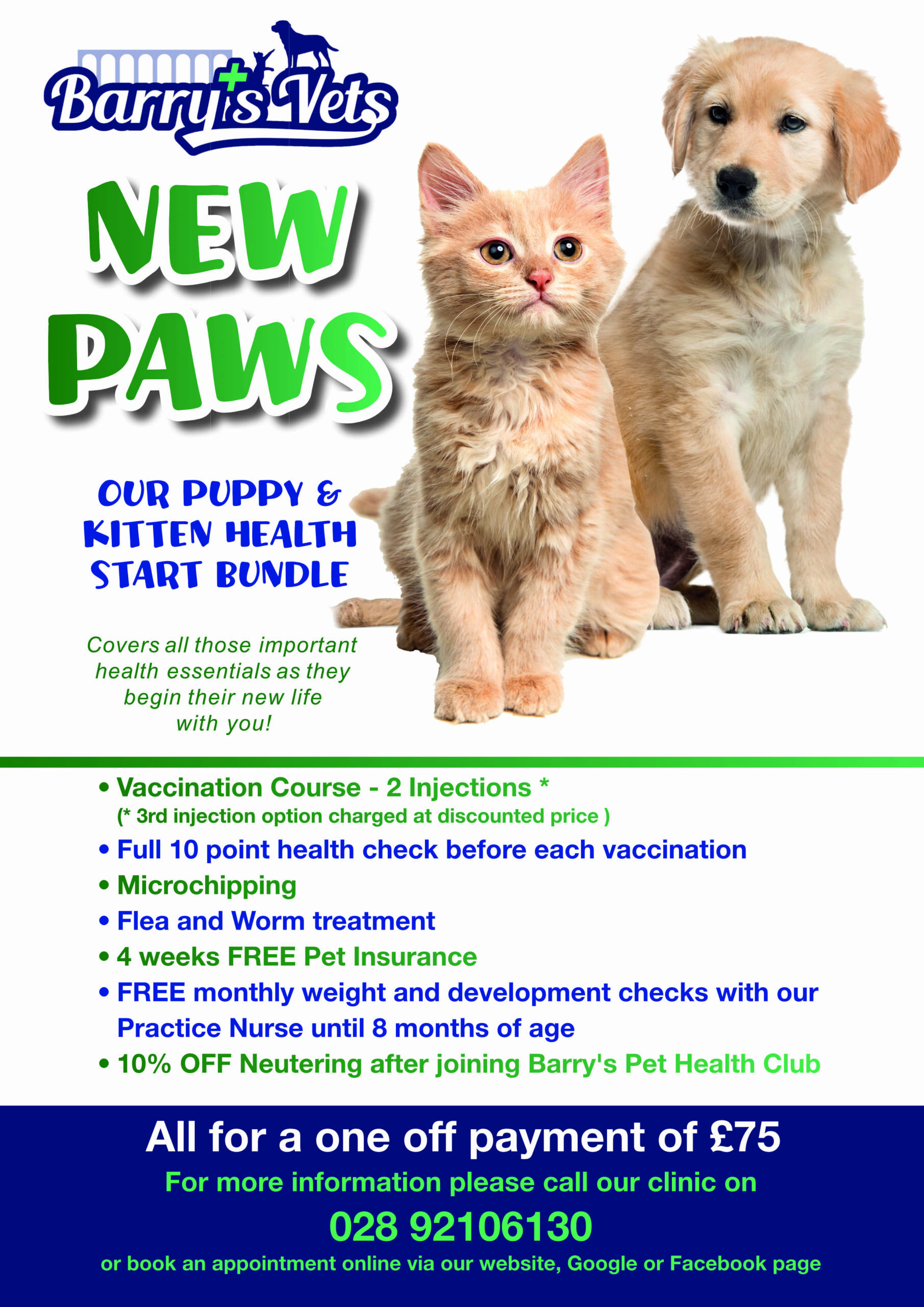 This is where you can find information on the special offers we currently have available in our Dromore clinic. Contact us to find out more or to book your pet an appointment.